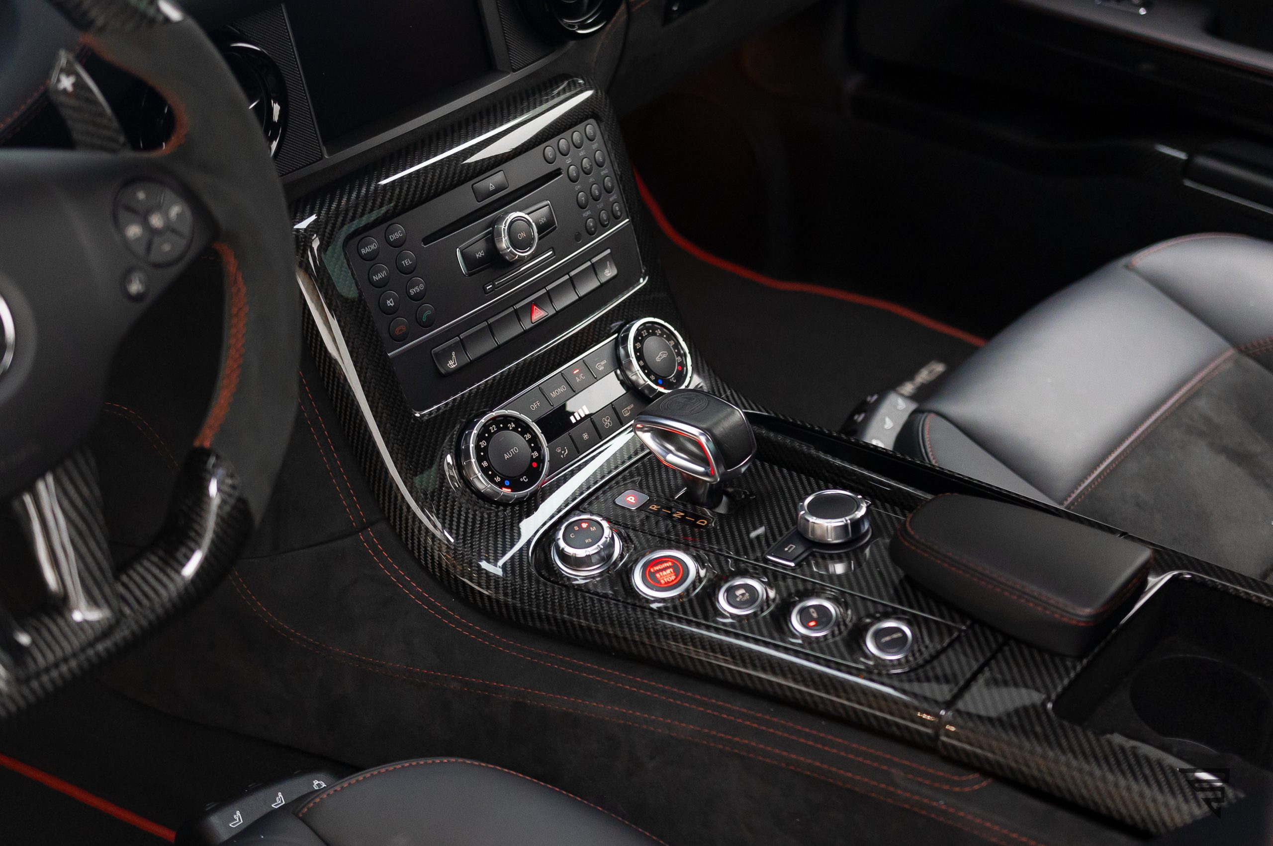 Interior em couro preto e costuras vermelhas com acabamento em Alcântara